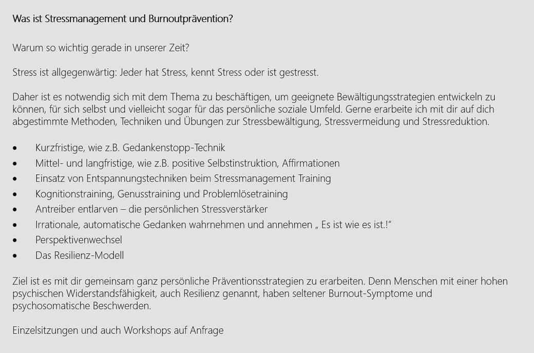 • Stressmanagement, Burnoutprävention